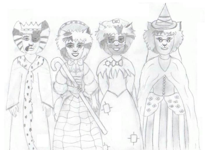 The next in the Storybook series...nursery rhymes. Here we have Alonzo as Old King Cole, Etcetera as Little Bo-Peep, Rumpleteazer as Old Mother Hubbard and Plato...yes, PLATO as Old Mother Goose! *giggle* Back Home