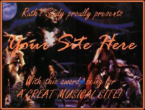Now...descriptions. The first award will be given to sites dedicated to musical theatre...either musicals in general or dedicated to a specific show or even character. The next one is for Disney sites...again, either Disney in general or a specific movie or character. The last one is for sites that don't qualify for the Musical Theatre or Disney awards, but that I still love. Just fill in the application form below and send it off to me...yes, it's THAT easy to apply, people!