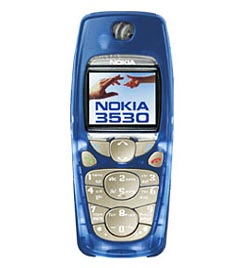 Nokia finally takes its 3000-series phones into the realm of color screens. The 3530 has less resolution and larger text than the 6610, 7210 or 6100 models. However it has a groundbreaking message counter that tracks the number of messages sent and received. Although the icons are retained in the first level of the menu, the second level has regressed a little by not displaying the entire list of second-tier submenus available to each of the first-tier menus. The material of the screen also seems to have a lower resistance to scratching. Unlike previous Nokia models, the 3530 uses translucent blue plastics for its power button and its side panels. When in use at night, the entire phone glows with the color. The 3530 has a hidden lanyard hole located beneath the power button. You can find this hole by removing the back cover and lifting one side of the power button’s rubber. Lift the side nearer to the ‘N’ in the imprinted Nokia. |