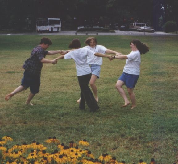 Hava Nagila! --Phil, Lindsay, Bouche, and Rachel being festively Jewish on the quad