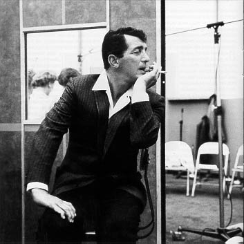 Dean had many flaws behind his charming persona. His arthritic spine cause him long periods of intense discomfort especially during the filming of the Rat Pack movie, “Sergeants 3” but the things that Dean was widely known for was his overly large hands and crooked pinkie finger on his right hand, that he had dislocated as a child and his father had unsuccessfully popped back into place. Dean suffered from claustofobia, which was an ever present problem throughout his life. Dean was seen by many as a man who couldn’t lose, because he had put so little at stake, as some thought he never really gave 100% with projects or business ventures, never risking anything for anyone or anything else. Dean was a bigger than life, handsome, charming talent that everyone from Frank Sinatra and Elvis Presley to Jerry Lewis admired. Dean mastered all media in his lengthy career – TV, radio, film, and music. Bing Crosby was a hero of Dean’s, as Dean saw all his films and listened to as many of Bing’s recordings as he could as a child. Dean, like everyone else, borrowed Bing’s style and crafted his own style of singing. Along with Bing, Dean also idolized Harvey Mills of the Mills Brothers and developed many of his mannerisms in his style of singing.