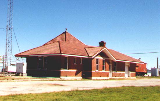 Front view of Aurora station Aurora is an intersection point between the former MoPac and Frisco railroads.