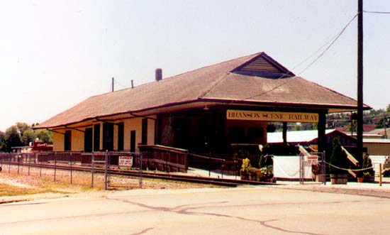 Former MoPac station at Branson (yes, the town with the country music shows!). Now headquarters for the Branson Scenic Railway.