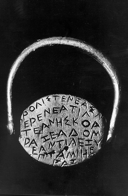 Original scripto continua with grecian alphabet from the Ezerovo ring