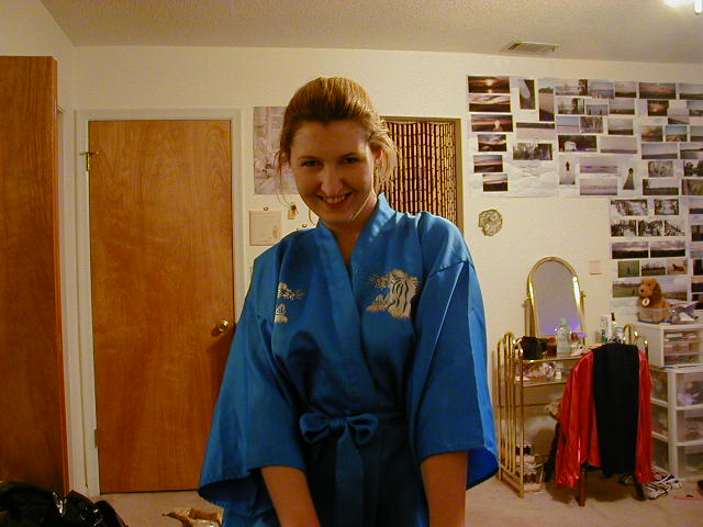 Me getting ready for bed (my blue kimono):