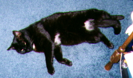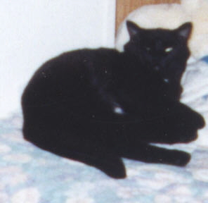 This is the saddest page on my website. That's right folks, this page is dedicated to my CAT! Don't worry, I never dress her up or anything C R A Z Y ! Ahem, anyway... I got Anonymous when she was just a baby, about 6 weeks old. My family and I never really gave her a name, so I just dubbed her "Anonymous" (aren't I clever?). She's had only one litter of 3 kittens and we gave them all away. Thanks to Bob Barker's reminders we had her spayed. We've had Anonymous for about 8 years and she's just like a sibbling to me (jealous, spiteful and arrogant!) She's my everything, I love her so much! These are prolly THE worst pictures of her, but whatever, she's just a cat!