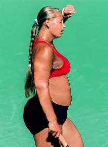 Even though, she is around 240-pounds, Anna Kournikova is still playing tennis. She hasn't won a match since the middle of last year, but the bulging Russian beauty is still getting looks from millions of admiring young men and is a role model to millions of young girls.
