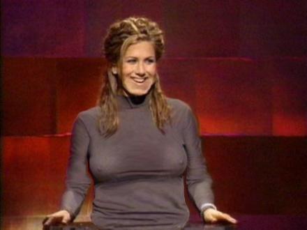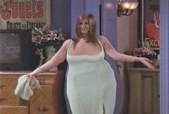 Jennifer's weight gain continued into the next season and the 250+ pound actresses weight had to be explained. The writes had Jennifer poss in the dress of the above pic, even while it was straining to keep her in, during an episode in which see wins a bet with Monica.