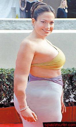 Jennifer Lopez, the Latino singer-actress famous for her large rear end, has gone and made her butt even larger as well as the rest of her body. Ms. Lopez distraught over boyfriend "Puffy" Sean Combs' trial disappeared for eight months and reportedly did nothing, but eat and watch TV. The 300-pound celebrity has made her first appearance since her hiatus and even the most braced stars were shocked at the huge singer-actress.