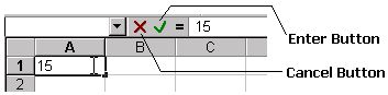 Notice that as you enter the value it is repeated in the formula bar. If the number is correct, just click on the Enter button (or press the Enter key). If the number is not correct, click on the Cancel button and re-enter the number.