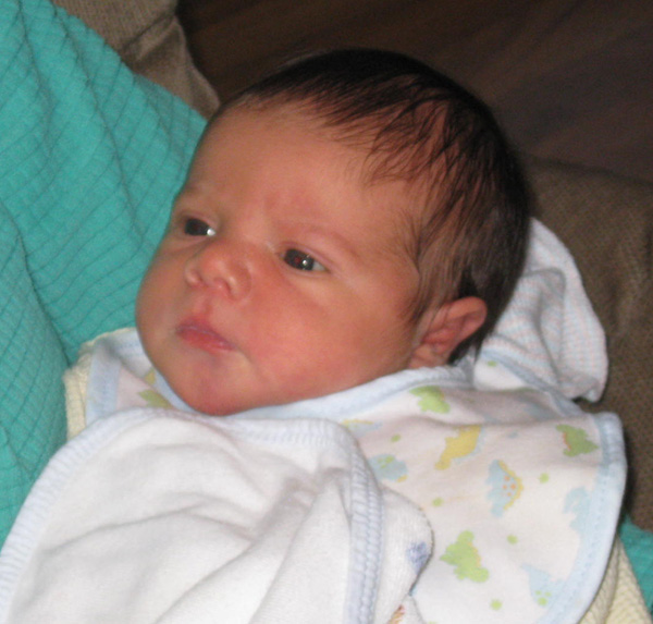 Closeup of new baby Connor James Drummond.
