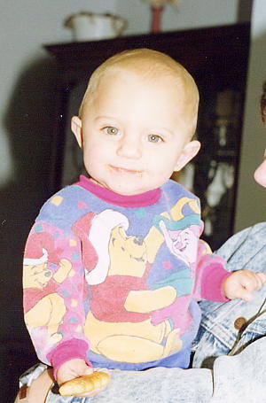 What a cutie!! This is my neice Emily. She is my sister Tamara's daughter. She's 2 years old, and she's such a sweetie!! There she is waving to everyone.... hehe. So cute. Hey Em, whats up?? She's really sweet. She's talking and everything. Well, kinda talking, she says some stuff, but it has that little 2 year old kinda sound to it, ya know? It's really cute. Well, I just had to put something about her on here, she's really cool. I havent seen her much lately, I miss her... :*(. Oh well, I'll haveta go visit her tomorrow :) Hehe, well, there she is. And on the picture below, she's having a blast!! I remember that one really well, we were all hanging out at my place, and she had just fed my dog Rusty a cookie that she wasnt supposed to, and everyone thought it was really funny. She has the cutest little laugh, especially when she thinks she's gettin away with something! :) She's so crazy. She has a little brother named Mitchell, he's cool too. Mitchell is about 7 months old. Emily is already into the big sister kinda mode, she's always talking to him and acting all adult-like with him, even though she's still such a little baby about him. She's picked him up and held him and carried him around a bit, and its sooooooooooo cute when she does that. She'll always talk to him if he's around, just to be friendly. And if Mitchell is sleeping, Emily will ask "Mitchell's sleepin??". Of course, she's just learning to talk, and she's still only about 2 and a half, so when she says it, it sounds like, "Itchell's sweepen??", hehe, its so cute. I'll haveta get a few pictures of Mitchell up too. I'll do that as soon as I get a few good ones. Just so ya know, the one holding her in the pictures below is me, I just cut myself out of them, cuz I think I look horrible in those pictures. hehe, I'll find a good one of me and Em together and put it up. Well, I guess I'm not completely out of them, you can see my nose a little... hehe.