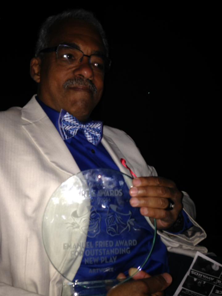 Gary accepting the Emanuel Fried Outstanding New Play Artie Award for Matter of Intent