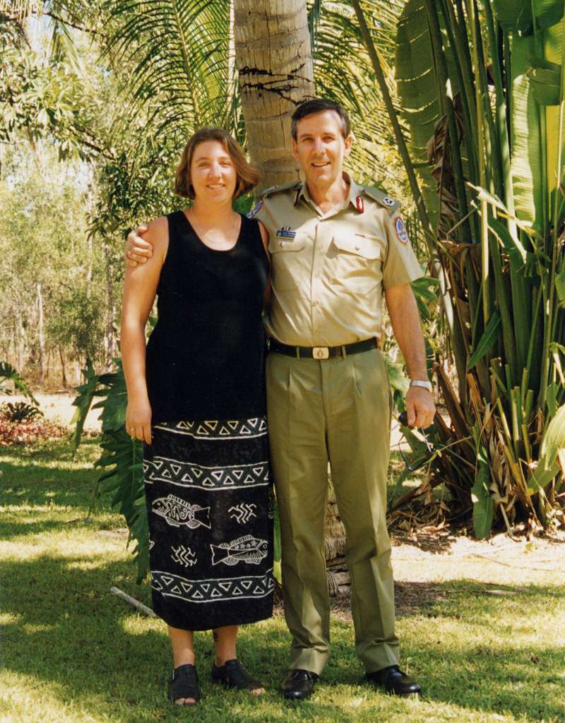Sarah and her father Bruce (in his NT Police uniform) in Bruce's garden.