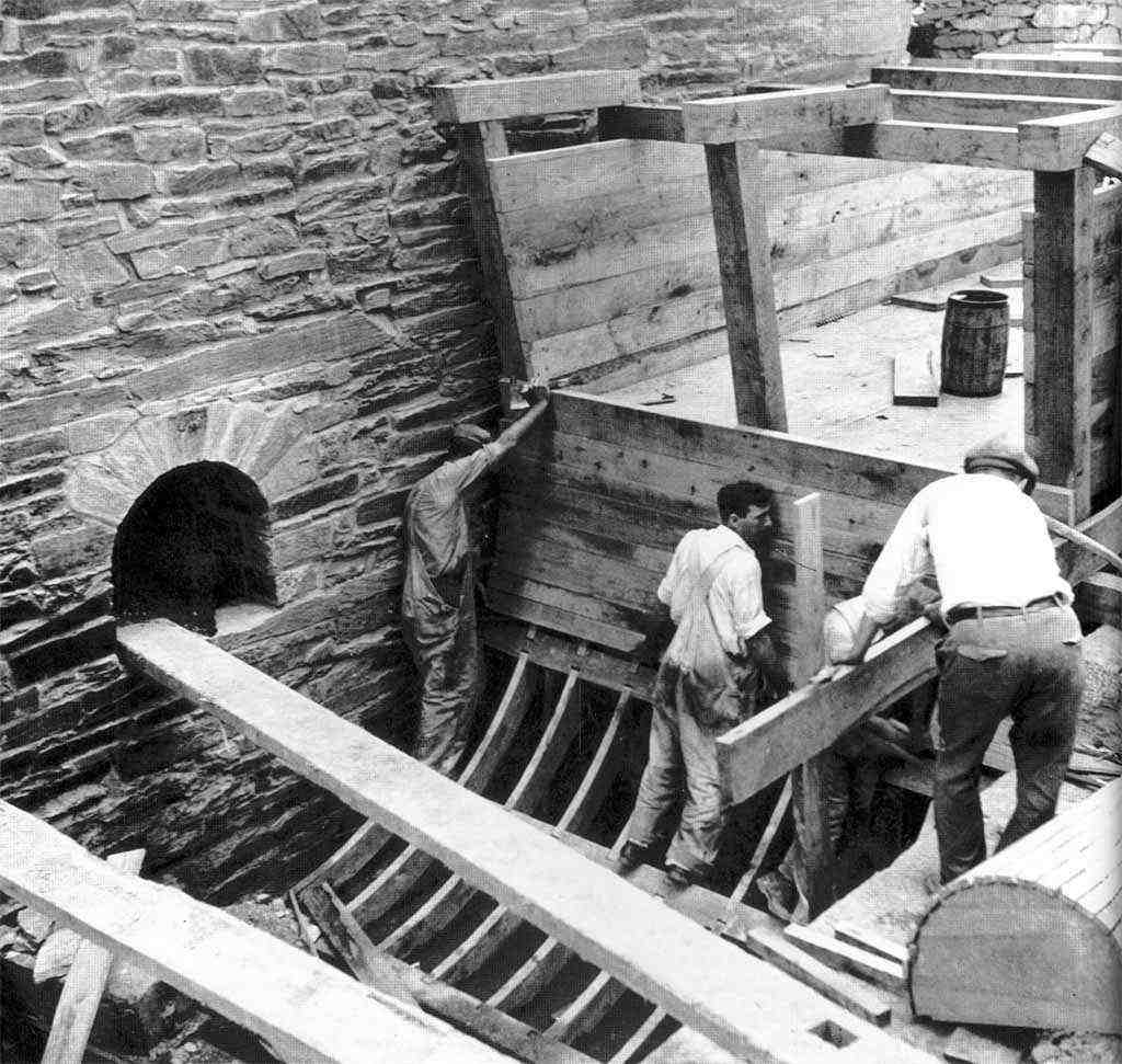 Donald C. Wisensale's crew assembling the wooden breast shot water