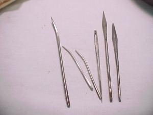 Smaller items found in a mill were a large sewing needle and string to sew cloth bags and holes in bags shut. Cotton or burlap cord was used to close sacks using a "miller's knot." To cut bundles of cord either the mill's wood ax was used on a chopping block or a curved blade was hung on the side of a post to cut the string at the desired length.