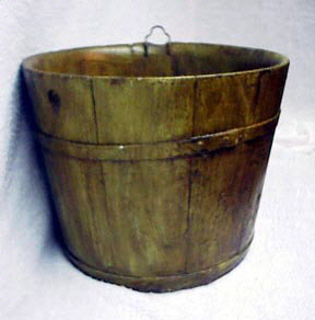 Barrels that were used in the mill to be fulled with flour were called "dry" coopers. These would have split ash hoops that were bend around the barrel and locked into itself thus forming a hoop. They were used with things that were dry such as flour, salt, sugar, gunpowder, tobacco, etc. They were used because there was not the same problem that a "wet" cooper that would have in swelling the wood and beginning to leak. They could be rolled around the mill by one person without the worry of the metal hoops striking a nail head and causing a spark that could be disastrous for everyone and everything. Old whiskey or wine barrels are cheaper and easier to come by but should be only used for mill and visitor trash.