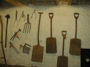 Also found in some mills are tools such as spears for catching eels, to clean and remove them out of the water system of the mill along with eel traps.