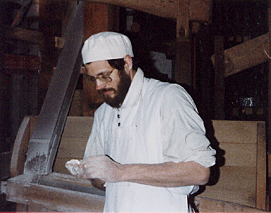 1. Corn, field corn used to grind into corn meal. A corn mill which had one millstone and ground just ground corn, often called a "corn cracker." There is a regional differences to the milling of corn.White corn is milled in the South, while yellow corn is milling in the North. In central and eastern Pennsylvania, they mill roasted corn into meal. Corn is the poorest in nutritional of the cereal grains. It has no export value. In Europe corn is mainly used for animal feeds and is almost unknown as a human food product. Corn is the English word for grain, mainly wheat, rye, oats, or barley. When talk of our corn they call it maze. In England, a corn mill would grind anything but what we call corn or maze. Corn contains no explosive dust. Products from the milling of corn are: 1. Corn meal (bolted and unbolted). 2. Corn flour (bolted). 3. Corn grits (cereal). 4. Corn bran (used mainly for animal feeds). 2. Buckwheat, is not a cereal grain, it is a flowering herb, used as a cereal grain. Buckwheat in German is "buckweizen" meaning "beech wheat" because of its similarity in appearance to beech nuts. A three sided seed. Buckwheat originated in central Asia, spread to China and Japan. Then it was taken to Europe in the middle ages. The Dutch and German settlers brought it to New Amsterdam (America) in 1626. Buckwheat is call by the farmers, "the poor man's crop" because sometimes its yield is not as much as they planted. It will grow on rocky and poor soils where other crops will not grow. Buckwheat is nutritionally superior to the other cereal grains. It is natures highest source of natural protein in the plant kingdom. It does not contain gluten for those allergic to wheat. Buckwheat also is sold in Eastern Europe as Kasha, which is roasted buckwheat groats. Buckwheat contains no explosive dust but it is very dust when milled. The bolting of buckwheat requires finer screens than that are used for making whole wheat flour. The products of buckwheat are: 1. Buckwheat flour (bolted). 2. Buckwheat cereal or middlings. 3. Buckwheat hulls (a non-digestable food stuff). 3. Rye, a hardy annual, is widely grown for grain and as a cover crop. Rye is most often used in bread making and rye whiskey. Rye has a problem with the fungus ergot which is similar to the chemical composition of LSD. It is not effected by the milling or the baking process. Rye is also used in making pumpernickel breads. The products of rye are" 1. Rye flour and whole rye flour (bolted). 2. Rye meal and pumpernickel flour (bolted). 3. Rye bran. 4. Barley, a cereal grain is used in malt beverages, in breakfast foods and soups. Barley is often sold as "pearled" barley which means that the bran is rubbed off. The products of barley are: 1. Barley flour (bolted). 2. Barley cereal. 4. Oats, a cereal grain, which a reed instruments are made from oat straw. Oats can be ground into flour but it is mainly used as a porridge (meal made from oats) made from millstone ground or rolled oats. Rolled oats, a new process milled on smooth roller mills, and quick oats is rolled oats ran through a roller mill cutting the oats into three to five pieces, thus reducing the cooking time. Oats have problems with moisture in the storage and milling of its products. Oats are covered in a hull, which is totally non eatable. To remove the oat hull, often the oats are roasted in a kiln to crack open the hull, then it is run through a pair of hulling stones to separate the hulls from the oats. The millers knew for years that oat bran was good for people before it was discovered by nutritionalist. Some products made form oats are: 1. Oat flour (bolted). 2. Oat meal (millstone and roller milled). 3. Oat bran.