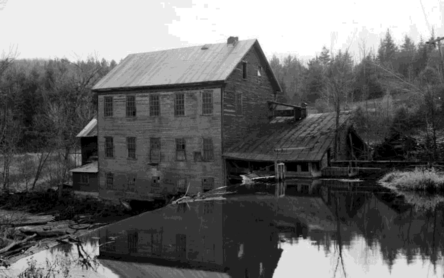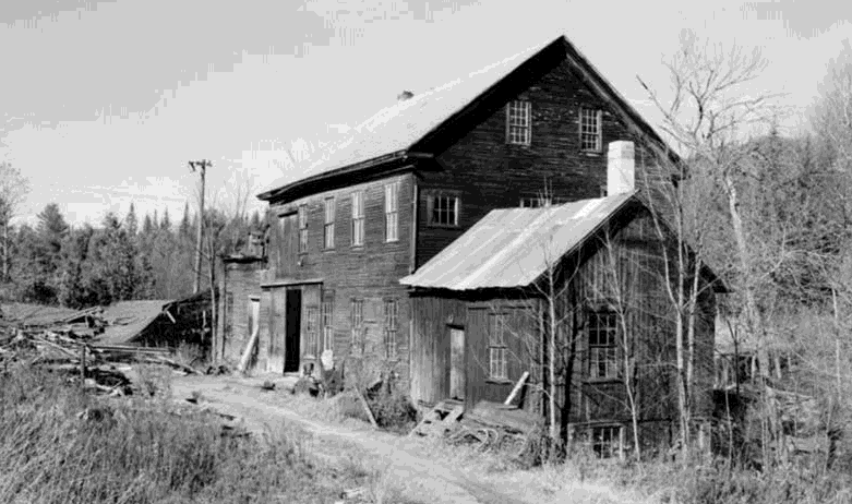 NOTES: (1) Barnet Land Records, 11/219. The William Stevenson farm had been deeded from Alex Harvey 11/9/1795. (2) Barnet Land Records, 11/18. These lots are described as the original rights of John Ellus and John Blount. (3) Barnet Land Records, 11/319. Shaw is granted the right to draw from the "floom or mill dam owned by Carrick sufficient quantity of water to operate machinery to carry on a tanning business in a building about to be erected near Carrick1s saw mill." (4) Barnet Land Records, Carrick to Gilfillan on 2/18/1837. Walter Gilfillan settled on the hill south of the road as seen on the Wallings map of 1858. (5) Barnet Land Records, 11/373 & 374. The log cabin and shed were not mentioned when Carrick purchased the former Stevenson Farm, so whether they were part of an earlier original homestead is not known. (6) H. F. Walling, Map of Caledonia County Vermont from Actual Surveys, New York: 1858. The map shows James Goodwillie and James Shaw as neighboring farmers on the north side of the Stevens River. (7) As indicated on the Barnet Grand List, which are not reliably available after that time. (8) Walton's Vermont Register, Montpelier, VT: E. P. Walton and Son. James McLaren occupied a farm overlooking his tannery on the hill south of the west Barnet road as seen on the maps of 1858 and 1875. (9) Barnet Land Records, Book 21, Page 485. When Isaac Harriman deeds the 1/16 acre to James Goodwillie in 1865, Goodwillie also owned some land to the west of this small lot as well as his farm across the river. It is described as "all land owned in connection with the blacksmith shop and shop thereon standing". I. Harriman resides in a farmhouse later owned by the Batchelders across from the sawmill according to the Wallings map of 1858. The Batchelder House burned c. 1943. (10) Barnet Land Records, 22/620 deeds "all land formerly used as a site for a tannery near the house of Nathaniel Batchelder...between the sawmill yard and Batchelder's barn and the water privileges deeded by James and William Shaw" to Alex Jack from Shaw and McLaren. The deeded [sic] from James Shaw (22/621) in 1870 refers to "the site of the old saw mill now demolished near the house of Nathaniel Batchelder and the old sawmill yard...between the old tannery site and James Goodwillie's land". The deed from Goodwillie in 1871 (23/326) transfers the land that formerly was the site of Harriman's blacksmith shop when he acquired it [in] 1865. (11) Barnet Land Records, 22/72 and 23/292. This parcel was 1/2 acre with a "house" and "buildings thereon standing" that Somers had acquired from Lydia Harvey in 1866. This was perhaps a reunion of a portion of the original settled farm, as the log cabin pitch across the road to the northwest was located on the former 150 acre Stevenson farm that had been deeded from Alex Harvey in 1795. (12) The Beers Map of 1875 shows "A. Jack Dye and Print Works" mistakenly located further to the west than was the case according to deed research. The US Census of 1880 lists Alexander Jack, age 70, as a machinist who had been born in Scotland, although Walton's Vermont Register lists Jack as a dyer from 1880-1884. Perhaps the mill was used for several purposes: the inventory of Jack's estate in 1887 after his death reveals a total of $144 of woodworking, blacksmithing, machining, dying tools listed as his personal estate along with "shop machinery and water power" listed as real estate and valued at $800. (13) Hamilton Child, Gazetteer of Caledonia and Essex Counties, Vt: 1764-1887. Syracuse, NY: Syracuse Journal Co., May 1887. (14) Barnet Land Records, 27/280. After Alex Jack's death, his widow quitclaimed the "house, shop, water power, shafting, belting, tools and cider mill and all fixtures" to several administrators. Local oral history indicates that the blacksmith shop was a horsebarn located on the north bank of the river where some of the previous mill owners lived on farms. Perhaps it is the earlier blacksmith shop operated c. 1865 by Isaac Harriman on the western portion of the property that was moved? (15) Barnet Land Records, 36/87 and 38/138. The portion acquired in 1922 was 3 acres of timberland bounded on the east by the bridge, west by land of W. Higgins, north by the river and south by the road. The 1930 purchase by Judkins was a "portion of the premises I [Mary Ann somers] now occupy" lying between the brook running from the West Barnet Highway to the Stevens River, the east by land of Judkins, and on the south by the highway. (16) Interview, Ben Thresher, 4/93. Ben says that John Judkins also carved his initials and the date "1895" above the stairway to the second floor. (17) Frederick Palmer Wells, History of Barnet, VT. (Burlington, VT: Free Press Printing Co., 1923) p. 511. The Grand List for 1906 verifies this, with F. L. Judkins listed with 1-1/2 acres, a homestead and shop, valued at $1400 while Don Judkins has a 2 acre homestead valued at $1000 and 66 acres of pasture. (18) Walton's Vermont Business Register, (Montpelier, VT: E. P. Walton & Sons, 1927 and 1930. Barnet Land Records, 36/123 refers to land connected with F. L. Judkins carriage shop. (19) Barnet Land Records, 46/283. (20) Ben Thresher was mortally injured when he was struck be a car when crossing to the mill from his home in 1994.