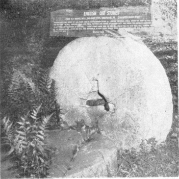 Photo Number 2: English Oat Hullers, Imported from England about 1740; used to make oatmeal for Washington's Army at Valley Forge, 1777-1778. From the W. F. Russell Estate, Chester County, Pennsylvania. History records that this mill ground the grain and feed for the men and horses of Washington's Army at Valley Forge in the historic winter of 1777-1778. (5) Cork Stones The stones used to grind cork are known as Derby Peak Stones; they are exported for Grindleford, Derbyshire, Scotland, and are of close-grained sandstone texture. The furrows are cut deep at the bosom, tapering to almost one-eighth inch at the skirt. The eye of the runner stone is necessarily large so to permit the broken pieces of cork to enter between the stones where it is granulated or pulverized. There has not been, as yet, any method discovered to granulate and pulverize cork which is superior or equal to the stone method. Therefore, stones are used almost exclusively for this purpose according to the latest information available to the writer.