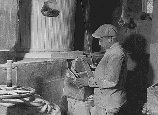 INTRODUCTION In some National Park Service Areas, historic or living history projects are operated to demonstrate the type and kind of equipment used during this period of time. This type of equipment or machinery was not designed for quick disassembly and cannot be easily cleaned or sanitized. 1. Cane Crushing or Juicing Operations: Note: Omitted for this presentation and format. 2. Flour or Grist Mills: Historic mills were usually powered with a water wheel or water turbine to provide the energy needed for the grinding of the grain, operation of elevators, and related activities. Power from the water wheel or water turbine is usually transmitted through a series of gears or pulleys and belts to the various machines within the mill. The grinding process is usually accomplished by large stone wheels placed in a horizontal position. These stones grinding wheels usually are provided with grooves and are operated with very small tolerances between two wheels so that any grain which is introduced through the center hole of these wheels will be crushed or ground up as it passes between the narrow space between the stones. The ground grain is then transported by elevators, moving buckets, airlift, or conveyors to a series of screens where the husks and other unwanted portions of grain are separated. The separated, properly ground material is then transported to an area where it is placed in bags. Construction: Many of these historic mills are still using the original buildings or reconstructed facilities which contain much of the old equipment used several hundred years ago. Many of these buildings have exposed roof beams, support columns, and cross beams, which accumulate dust, flour and grain particles. This type of construction makes it difficult to clean these buildings. Most of the equipment and machinery in these mills was not designed for quick disassembly nor can it be easily cleaned or fumigated. Grains which are to be ground, processed, and used for food should contain no foreign material (dirts, dust, sand, gravel, insects, rodent pellets, urine, hair) and contain no toxic chemicals such as mercury, arsenic, etc. If the grain is stored at the mill for a time before it is ground and processed into flour it should be stored in a suitable storage bin which is properly constructed to prevent contamination during this period. It should be protected from dust, moisture, insects and rodents. In many of the old mills the grain handling equipment such as elevators, conveyors, storage bins, etc., are constructed of wood. Elevators are so constructed that they are not easily take apart for cleaning. This type of construction permits the accumulation of grain in corners, cracks, and crevices and provides a ready food supply for insects and rodents. The existing equipment should be modified in such a manner that complete access to all portions of the grain storage and handling equipment is accessible for easy cleaning. This may be done by providing removable panels or hinged sections so that the equipment can be properly maintained. Cracks or open joints where two pieces of wood are jointed should be sealed with a suitable sealing compound such as silicon clean sealer. Insect Infestation: This is probable the most serious problem in grain mills. There are a number of insects which infest grain and will cause contamination of the grain or grain products. (See appendix #2, for brief description of insects and drawings.) Insect infestation may be caused by bringing in the infestation with the new grain or new grain may be infested by storing in bins which contain small amounts of old infested grain. It is important therefore, to properly clean the mill before any grain operation is begun. Probably the most effective method of cleaning is with a suitable vacuum cleaner. A heavy duty low speed unit such as a Hoffman (5 horse power) or Tornado should be used. A portable air compressor with suitable hoses and nozzels cable of producing air at 100 psi should also be available. To Control Infestation: Note: The first paragraph is omitted because it advocated the use of various fumigates. The FDA and OSHA may no longer approve of these chemicals and substances. Good housekeeping goes a long way in controlling pests. Modern mills have climate control with is the ultimate in controlling pests. Museums are also big on climate control to preserve artifacts collections, but I have yet to see a restored mill that also has climate control. A restored mill is just as much of a museum and also contains a full assortment of artifacts so it should also go to say, that with the grain pest problem, they should also be climate controlled. T. R. Hazen Disassembled machinery should be thoroughly cleaned with a vacuum cleaner to eliminate all traces of grain or grain products such as flour or corn meal. Storage bins should be no cracks or crevices in the corners where small amounts of grain may remain from one operation to the next. Particular attention should be paid to equipment such as elevators, and conveyors, which have cracks or crevices or blind pockets with might allow the accumulation of small quantities of grain or grain products. Failure to removed pockets of accumulation grain products will permit the propagation of insects and provide a source of food for rodents. Processed grain such as flour or corn meal should be packaged and stored in a suitable storage area protected from contamination by dust, insects, and rodents. Packaged products should be properly labeled before they are sold, offered for sale, or given away. Only through diligent care, proper storage, adequate cleaning and fumigation of the entire facility can the control of insects and rodents be accomplished. The complete cleaning and fumigation procedure should be repeated on a cycle of at least every three weeks while the mill is in operation. Rodents, Rats, and Mice: (See appendix #3 for description) Rats and mice are often a difficult problem