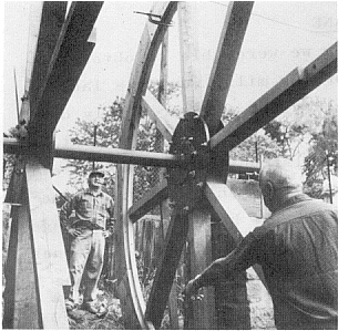 The Water Mill at Water Mill is no ordinary water mill. It is a monument to volunteer technology and the dedication of a community. Last operated as a grist mill in 1880. by the time that the Ladies Auxiliary decided to restore the mill in 1973 there was no tangible evidence of previous milling operations except the remains of a tub wheel in a muddy cellar. In an area know for its windmills it seemed "only right" to restore one of the oldest surviving water mills in New York State. That the restoration was done by volunteer labor and very little money and that the mill is now grinding on a daily basis is "raison d'stre." History In 1644, near the first English settlement in the State of New York, Southampton, colonists built a water mill for grinding of corn. Two miles from Southampton and between the hamlets of Hayground, Bridgehampton and East Hampton the mill became the focal point for chauvinist census recorders with "men, East of the mill" and "men, West of the mill." The Immediate area around the mill became the village of Water Mill. The articles of agreement January 7, 1644 (Charlie Howell's birthday was January 7th) between the town of Southampton and Edward Howell (first miller) were as follows: