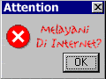 Hey, don't forget about our big fellowship night on Wednesday, 4th 2001. It wil be at 20.00 until 21.00. Please remember that I'm now in Jakarta, so it would be 20.00-21.00 Waktu Indonesia Barat (Western Indonesian Time). Please check your time tables in accordance to indonesian time. The place is at channel #oneway, on MIRC, in the server dalnet. God bless you.