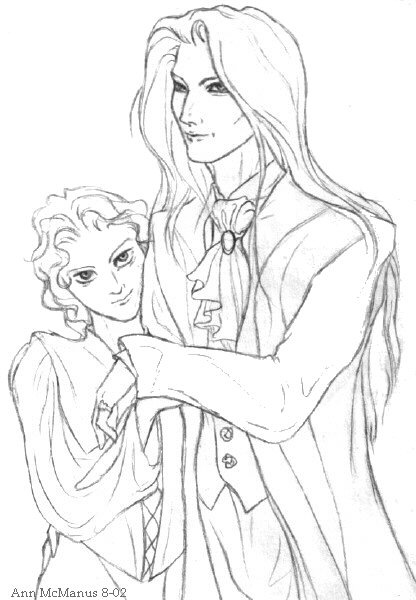 Louis, Lestat and Claudia. Piece titled: "American Gothic"
