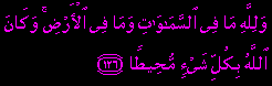 | Dan bagi Allah jualah segala yang ada di langit dan yang ada di bumi; dan Allah sentiasa Meliputi (pengetahuanNya dan kekuasaanNya) akan tiap-tiap sesuatu. [Al-Nisaa': 126] | ![]() |