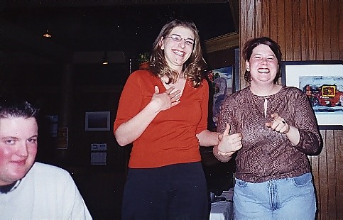 Okay, you need to pay attention to the progression in these pictures...first look at Jordana's face (on the far right)...Anne is sticking her boobs in Sam's face...haha!!!