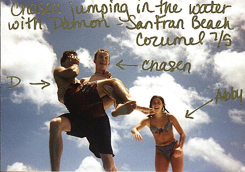 Chasen jumping with Damon into the water....those guys are goofy! :)