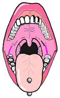 I get off at King Square, and before I really have time to think of it, I'm in front of Wizzard's Tattoo, Union Street Saint John. There's about 5 dirty looking, really tattooed people standing out front. They see me walking towards them and comment, "You look shy". Whatever that was supposed to mean. I walk into what they call a studio, but looks to me no more than 15 square feet of open space. I walk over to the counter and say, "I want my tongue pierced." He gives me a form to fill out- Basically, name, address, phone, and I sign a form agreeing to take care of my piercing. He takes me around back and tells me to sit in this big comfy chair. It's then that I notice that I know the dude who's about to stick a needle through my tongue- It's a dude I dated way back, but got all pissed off when he realized that I was trying still talking to my ex while I was trying to hook up with him. "Please don't fuck me up because you hate me", I say in a shaky, vulnerable voice. "I don't hate you", he replies... "That was a long time ago." He gives me a little cup of Listerine, the yellow kind, and tells me to gargle. While I'm doing this he's getting the barbell and needle ready, but I wasn't paying much attention to him... I was too nervous. He gives me a wastebasket to spit in, and then he takes a pencil and marks my tongue. (How this worked, I don't know, because I later on tried marking on my tongue with a lead pencil...) But, hey, he's the "professional". Now he takes something that looks like Vaseline and smears it under my tongue. He puts a clamp on the end of my tongue and pulls it out- This really, really hurts. It's now that I notice about 3 people watching- I don't appriciate this, but I'm not exactly in the position to argue. He asks if I'm ready, and I nod my head yes. I close my eyes tightly and take a deep breath. I feel the needle start to push through the bottom of my tongue- It's a burning feeling almost- And then everything goes really bright... If I didn't know better, I'd say I passed out for a couple of seconds. I hear the piercer saying "You have to hold your tongue out, if you don't hold your tongue out, I can't do it", but I can't feel my tongue at this point, so if I'm not holding it out, I'm not aware with it. I realize I'm drooling all over myself. He says "That's good", and pushes the needle the rest of the way through. I let out a squeal and grab his arm- Not the one he was piercing with, the other one. He reaches over to the counter for something- the barbell, I assume, and fiddles around with my tongue for about 20 more seconds. The burning feeling is now a nice warm feeling. He says he's done... I open my eyes and close my mouth. I bite down on the barbell... As soon as I feel the metal in my mouth, I think, "Omigod... Why did I do that?" It feels really strange in my mouth, it felt too long. I try to tell him this... It was difficult though. He says the extra room was to allow for swelling, and to come back in about a week for a smaller barbell if I wanted. I'm in a hurry to just get out of there, I grab my shopping bags and throw three $20's at him. As I walk out the three dirty dudes from earlier comment "You don't look so shy now!" I resist the urge to kick them. So... now I'm at the busstop, newly pierced. I can't stop looking at the thing in my compact. I get home 20 mins later and call everybody I know, which was a good thing to do while I still could. Read on to find out about my newly PARALIZED tongue... *ahem*...