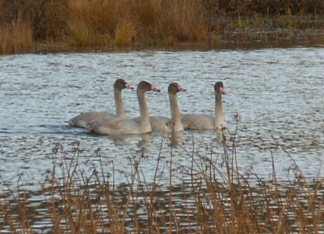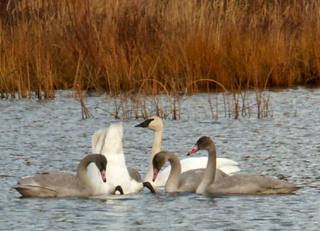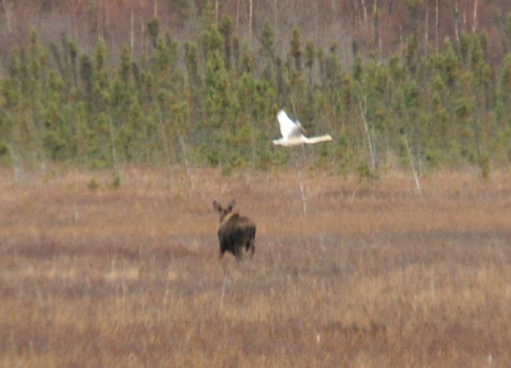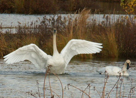 | While driving back into the city, I noticed some large white birds at a distance, in a wetlands called Potter Marsh. When I heard their call, I was sure they were Trumpeter Swans, uncommon migrants through our area. They were far away, and all these photos are heavily cropped. |