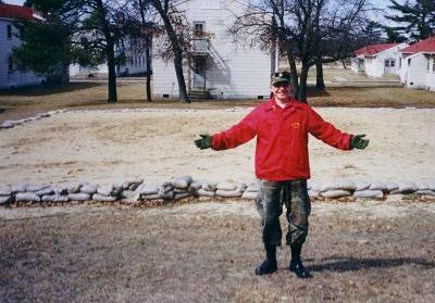 This is "The Beach", a very large sandpit which is used for corrective punishment, attitude adjustment, or sometimes just plain 'ol PT. The sandpit usually involves PT, grass drills, low-crawls, or some very interesting and creative stupid-people-tricks invented by the cadre, most often by STL "Front-Back-Go" Stephen, TL "Motivational Quotes" Goettl (formerly ACC Goettl), or TL "Do we need to go to the sandpit today?" Meinke.