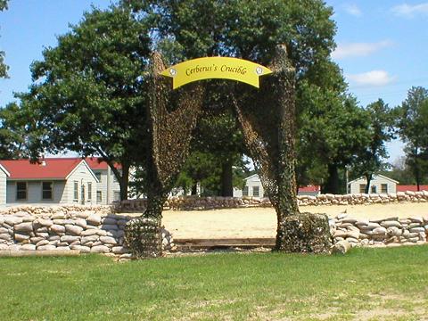 This is the latest addition to the sandpit...a very formidable entryway with a banner that says "Cerberus's Crucible". I'll have to do some investigating to find out the significance of that title. :)