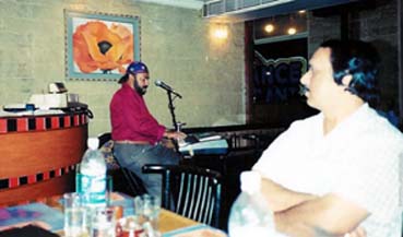 (Above: Ernest at the keyboards while Bhendi looks on)