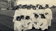 My sister Janet and I used to sing in the choir, and until Fernie came along being in the choir didn't bring much kudos. Fernie changed that by experimenting with and making black mortarboards (complete with tassels) for the choir girls to wear, and having white surplices made for the whole choir to wear. I felt so proud of ebing a choir girl after that.