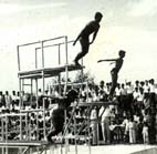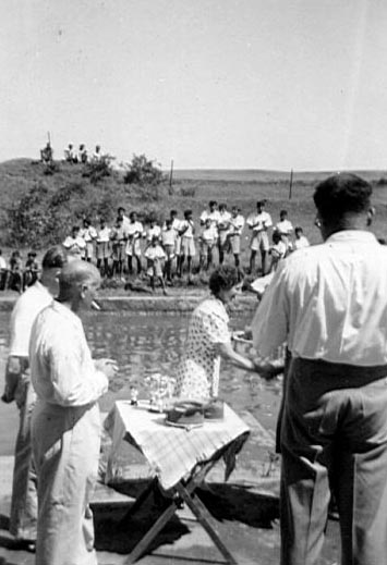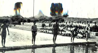 The Duck Pond was the official swimming pool in my time, between 1940 and 1946, we boys used to swim in it whenever we liked, unsupervised, and often in the nude. Many was the time we were caught short when the girls appeared, under strict supervision of course, and we boys had to make a run for it, trying to hide our modesty using hastilly grabbed uniforms or nearby bushes, amidst the hilarity of the girls.