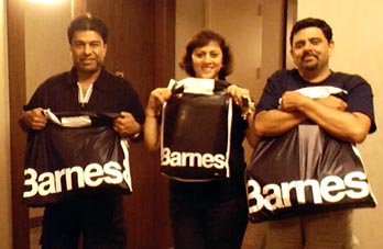 l to r: Bharat Jagoowani, Erica de Gama and Cyrus Todiwala holding Barnes carrier bags !!! The photo of this good looking trio was taken when they met in Toronto in August.