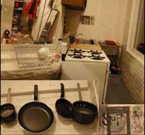 This is a collage of my kitchen, the interesting part is the window that leads to my bedroom. The sign that appears in above the sink and again in the lower right hand corner is simply a command to wash the dishes. I write and paint on newspaper because it it free, its on a cool page though, there is an advertisement for the Eight Propositions at the MoMA, check it out.