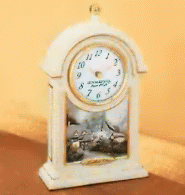 Thomas Kinkade "Sweetheart Cottage" Clock. Description: This porcelain clock features a reproduction of the "Sweetheart Cottage" painting by Thomas Kinkade. Runs on 1 AA battery. (not included)Price: $14.99