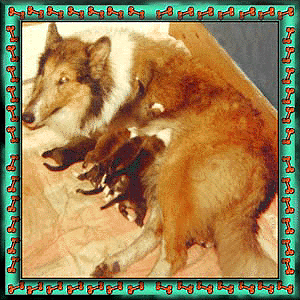 Dixie had her first litter quite by accident. I had no idea that she was pregnant. You see, we had a very short front fence and one year when we went on vacation for three weeks, Ruben's mother went over to our house every day and fed everybody. Which included 26 cats and Dixie. Well, sometime during those three weeks, Dixie came into heat and the inevitable happened. You know, short fence, which a dog could easily jump!!! It's funny, I remember telling Ruben that Dixie was finally starting to fill out and get pretty!
