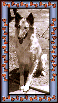 This is Buda. She was one of Smokey's puppies. My mother had bred Smokey to a registered Collie in June of 1963. She was due to have her pups in August. We were scheduled to move at the end of July. By the middle of July, she showed no signs of being pregnant, so we felt it was safe to go on and move. About a month after we moved, Smokey started acting strange. Finally, after figuring out that she was indeed pregnant, we put out her bed and box and the labor began. She was in labor for over 5 hours. Finally, Buda was born. She was the only puppy. The vet said that Smokey absorbed the other ones. We don't know why Buda survived and the others didn't, but we were glad that it was Buda who did.