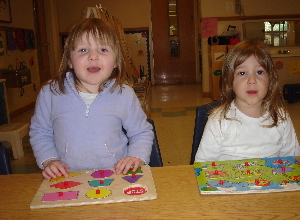 2/13/06 - Playing puzzles with her best friend, Lokei, at school.