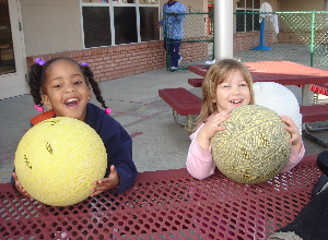 2/9/06 - Playing basketball at school (and with her friend Myah).