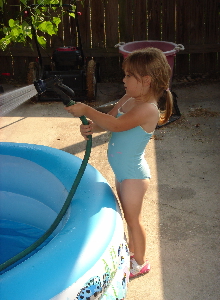 6/26/06 - Playing outside, filling up her pool with the hose.