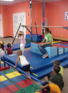 Kaira started a gymnastics class during the spring semester and is loving it. She is learning basics like tumbling, walking the balance beam, and even starting a little work on the double bars learning flips.