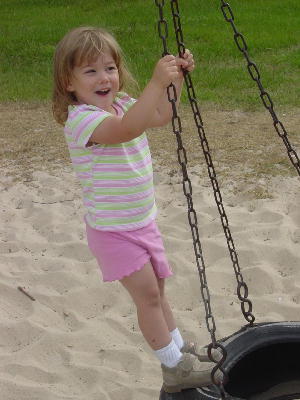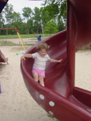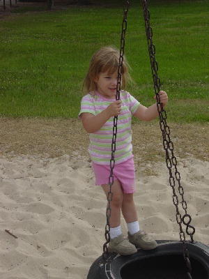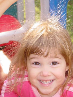 1/18/05 - It was warm enough to play outside today, which we've been having to avoid the last couple of days. Kaira was thrilled to be outside. Her hair wasn't in pigtails like it usually is, and the static from the playground made her hair a little wild.