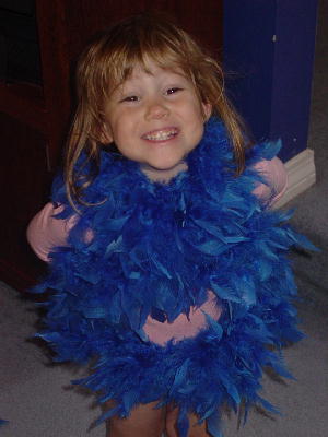 04/19/05 - Kaira playing with a feather boa we found while cleaning out the back of a closet.